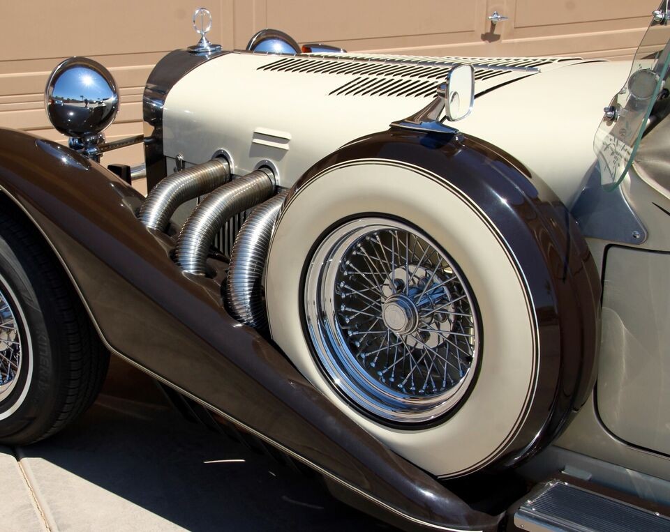The interior is upholstered in tan leather and looks nearly new. The somewhat antiseptic instrument panel will nonetheless track every iota of the car’s systems. Power steering and power brakes are oddly anachronistic in the true “roadster” configuration, which supplies only side curtains for weather protection. The phaeton body style is a four-place convertible; the rear seats are just as nice as the fronts.