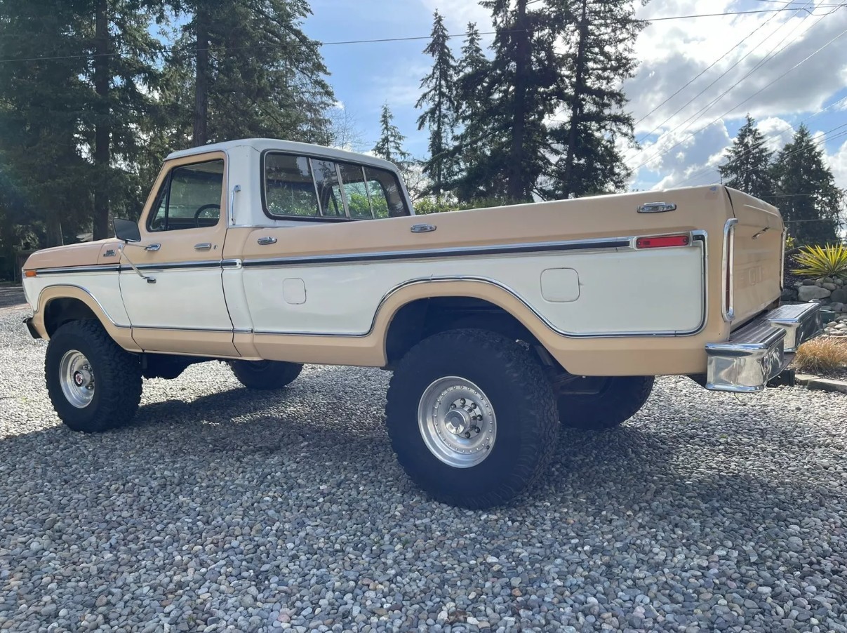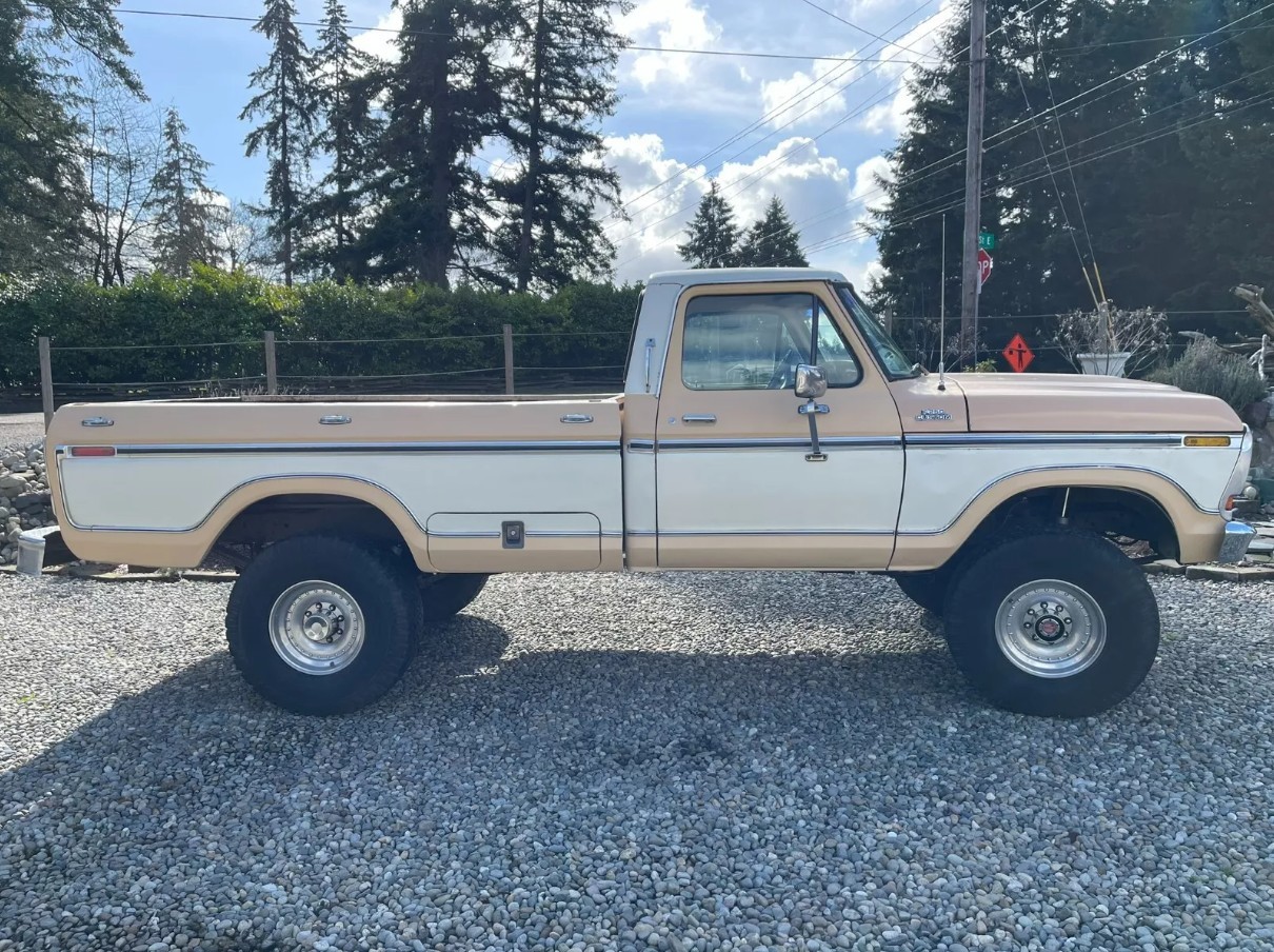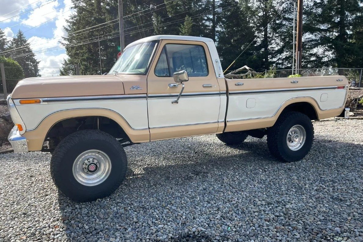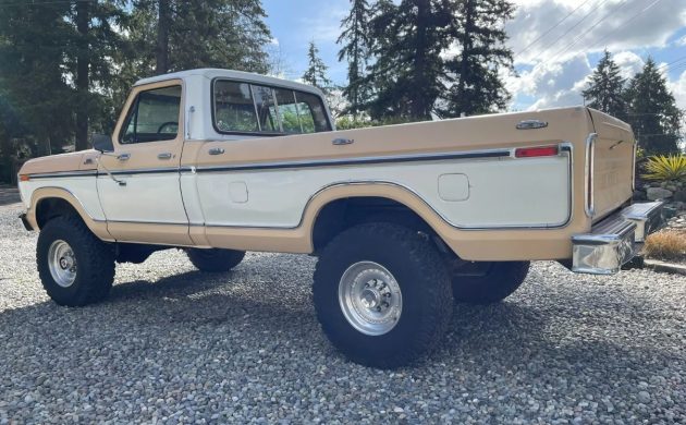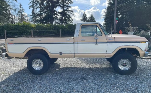Ford’s F-Series model range has been an integral part of the company’s product lineup since 1948, and it appears there is no chance that the situation will change in the foreseeable future. The Sixth Generation remained on showroom floors from 1973 until 1979, with the first owner ordering our feature F-250 in 1977 in a combination of Light Tan and Polar White. The seller describes the paint as older, suggesting it may have undergone a refresh at some point. However, I agree with their statement that it still looks good, and would be fine if the buyer prefers the “survivor” look. There are a couple of repairable dings and dents, but none are severe enough to warrant panel replacement. The underside shots show no evidence of penetrating rust, the trim looks respectable, and the glass is clear. However, the exterior is probably defined by the Rough Country 4″ Lift Kit and the enormous 35″ All Terrain tires. They indicate that it would take something pretty substantial to stop this beast in its tracks.