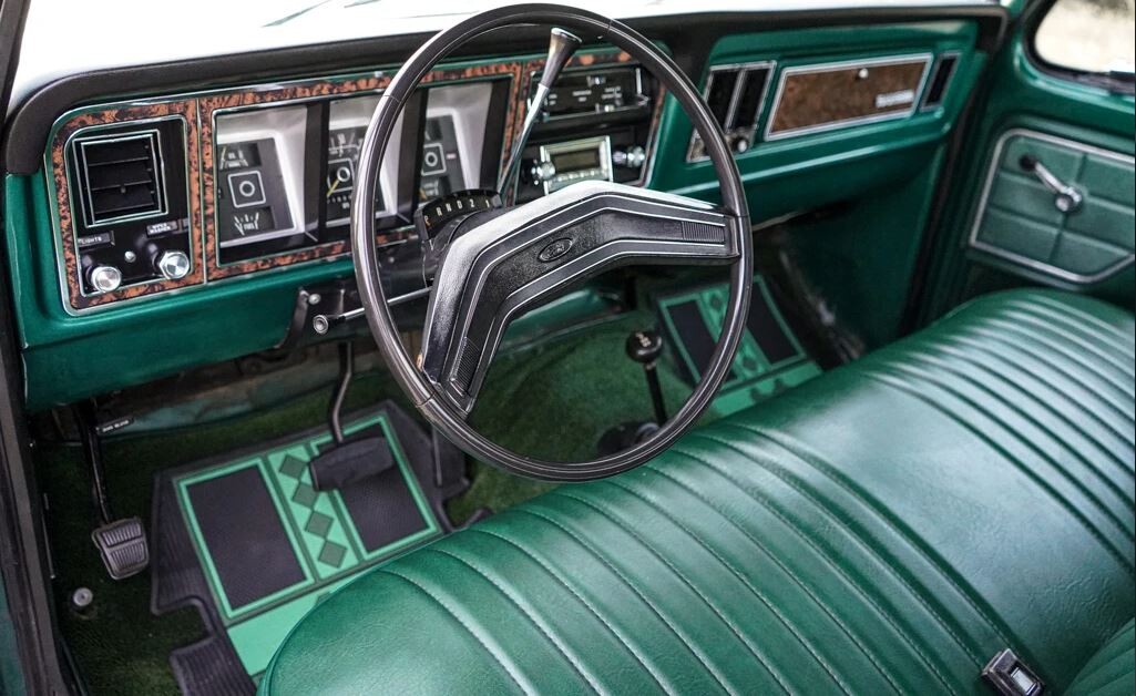 This F250 makes quite an impression when viewed as a total package. Its Dark Jade paint shines beautifully and is complimented by the custom Detroit steel wheels and upgraded LED headlamps. The overall first impression is positive, with the panels and paint looking flawless. An in-person inspection will probably unearth imperfections, but I can’t spot anything requiring immediate attention. This classic’s beauty is more than skin deep, with the underside shots confirming this Pickup is rust-free. The bed is spotless, while the chrome and glass are as impressive as the rest of the exterior.