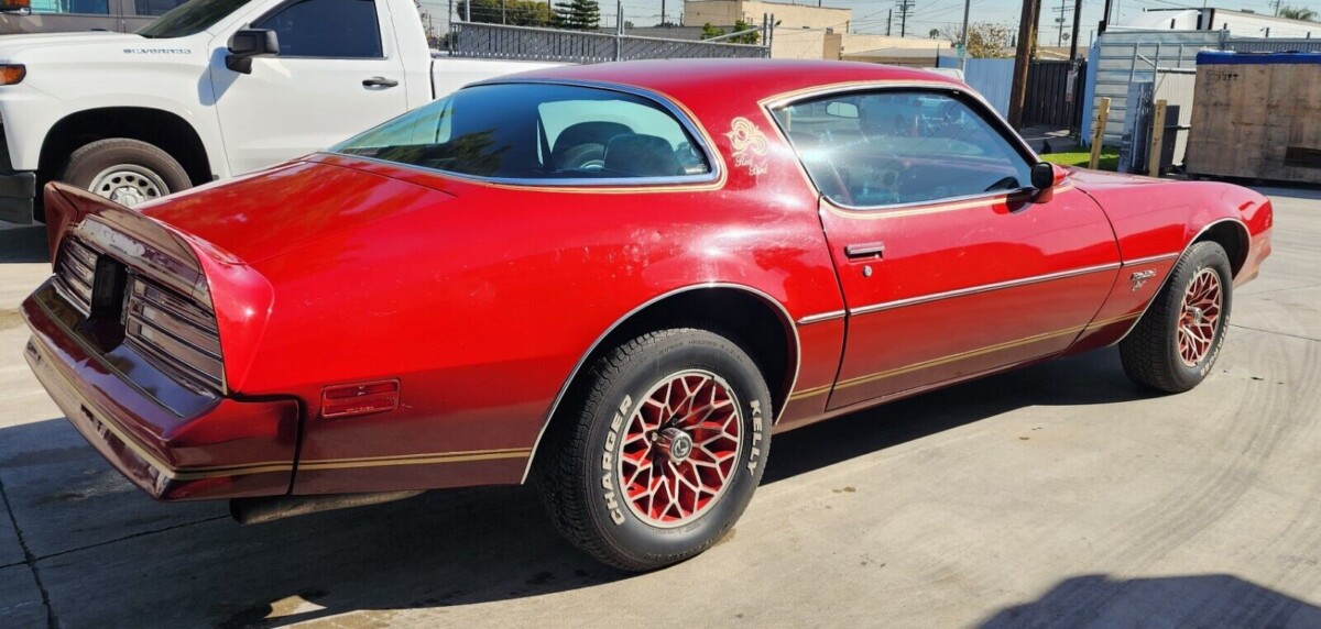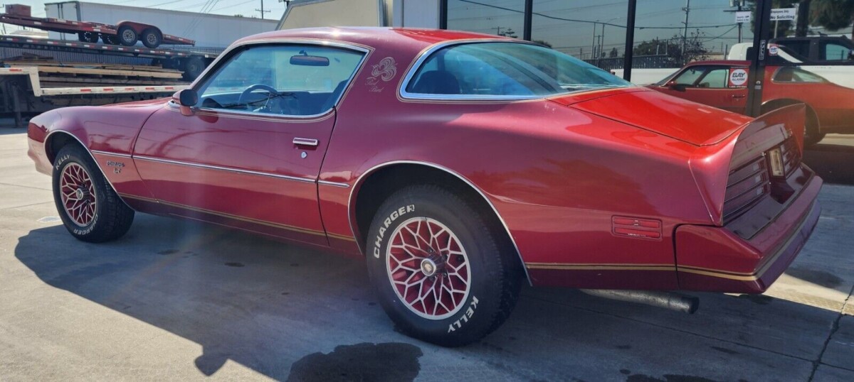 Pontiac released its Redbird package in 1978, based on the Firebird Esprit model. It remained in production for two years, but the company used different paint shades each year. For 1979, it utilized a standard Firebird shade called Mayan Red. However, in 1978, it chose Roman Red, a color that hadn’t graced a Second Generation Firebird to that point. By adding Gold stripes and decals, the company created a car that stood out in the crowd. This Redbird presents nicely, with its paint shining beautifully. The seller believes the front clip may have received a repaint, and although it looks acceptable, there are enough small chips and marks to suggest it might benefit from a repeat performance. The remaining painted surfaces are clean, the graphics look crisp, and there is no evidence of dings or rust. The car has remained in dry storage in California for years, making the lack of rust unsurprising. The trim and tinted glass are excellent, and the color-coded Snowflake wheels are free from stains and damage.