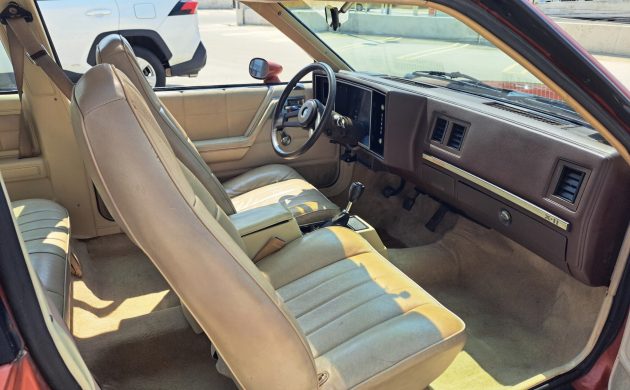 This isn’t the Iron Duke-4, it’s an LH7 2.8-liter OHV V6 with 135 horsepower and 165 lb-ft of torque. It’s sent through the four-speed manual to the front wheels. This engine was a serious upgrade over the Iron Duke-4, both in terms of power and smoothness. To make better use of the extra power, the transmission had a unique final drive ratio. To improve handling, the suspension was retuned, and sway bars were added to the front and rear.