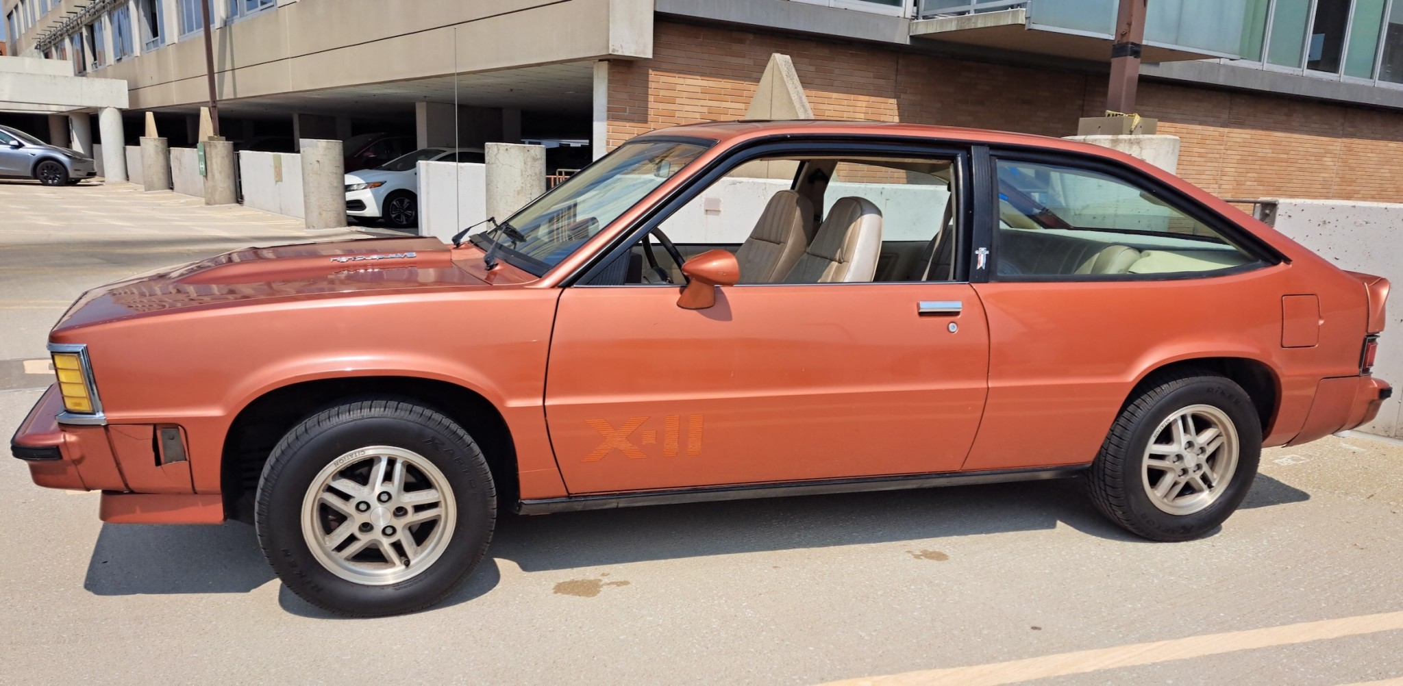 I took a hard look at the X-11 back in 1983 when I was 15 and thinking about my first car. I liked the looks, but I didn’t care for the FWD. I wanted rear drive and a V8, even though the newer ones were pretty anemic by then. Still liked the looks of the X-11 with the cowl hood and streamlined hatchback, and the “HO” (ha) 6 banger seemed a step up from the Honda & Mitsubishi/Dodge 4 cylinder FWD cars, but the Hondas had the durability rep, and the Dodge/Mits had the turbo performance advantage, so the X-11 just got a hard look and a pass.