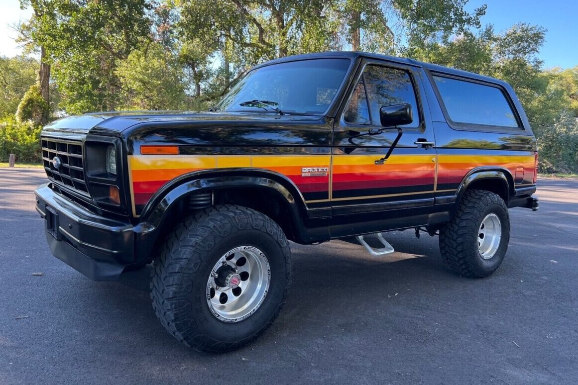 The Third Generation Bronco can be an imposing vehicle, particularly finished in Raven Black, with a set of larger wheels and tires. That ticks the boxes with this classic, guaranteeing it will turn heads. The seller indicates a previous owner treated it to a repaint in its original shade, but the “orange peel” and runs suggest the work isn’t high quality. There is also a significant collection of chips, scratches, and some paint checking. However, it remains presentable, with its cause being assisted by the later addition of the bold multi-hue graphics. Rust is minimal, with only a couple of patchable spots in the front fenders for the buyer to tackle. The rest of the exterior is solid, and the floors and frame feature nothing beyond surface corrosion. It looks like someone has updated the headlights to LED units which should turn night into day, while the side steps are a practical addition considering the increased vehicle height courtesy of the bigger wheels, tires, and a lift kit. The trim looks good for its age, and I can’t spot any glass issues.