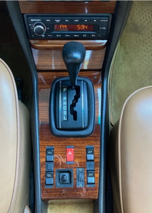 The interior is fine, with decent upholstery front and back, and a very nice dash and console. The seller notes that all the power accessories work; the rear window regulators were just replaced, and several actuators that run the accessories are new. The sunroof works well. The stereo has been upgraded with a vintage-looking unit, including a subwoofer installed inside the first aid kit!