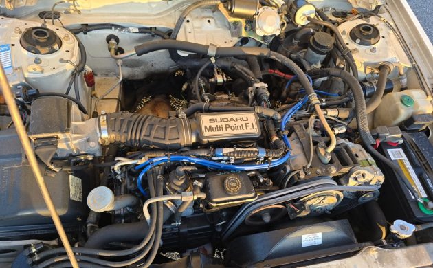 The “hard-edged” exterior styling theme continues into this Subaru’s interior. There is barely a curve to be found, and there are some pretty funky design elements. The major controls are situated on column-mounted binnacles, and the shifter bears a striking resemblance to the iconic pistol grip that was so popular in the 1960s and 1970s. The rear seat, which is a “kids-only” zone, features a folding backrest for trunk access. However, the XT’s low nose forced Subaru to relocate the spare tire from its traditional engine bay location to the trunk, and its position restricts access to that area from the interior. This classic has the hallmarks of a car that has been treated respectfully. The upholstered surfaces feature no significant wear, and the carpet is excellent. There are acres of plastic, but it hasn’t succumbed to age or UV exposure. The owner handed this XT to a Subaru specialist to update the air conditioning to R134a refrigerant. The winning bidder also receives power windows, power mirrors, an AM/FM radio, and a cassette player.