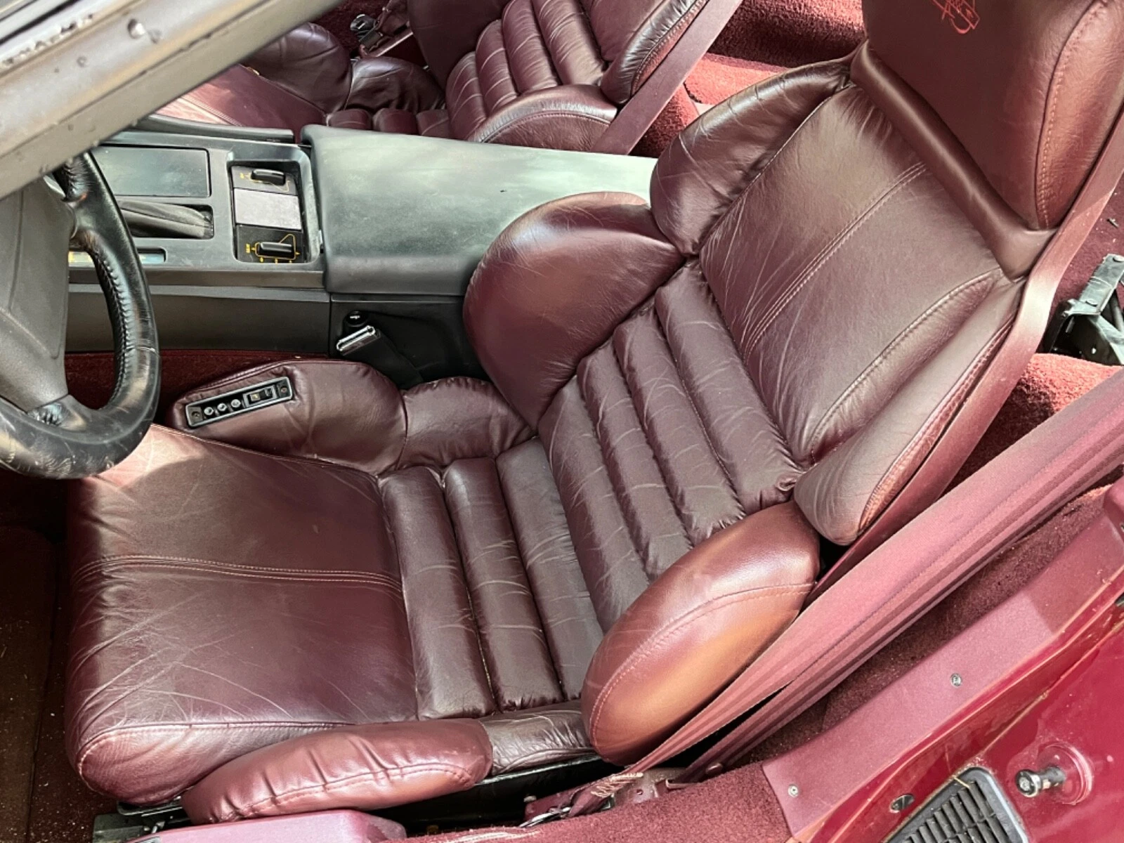 The “Ruby Red” theme continued inside all 40th Anniversary Corvettes, with this shade of leather also exclusive to these vehicles. This interior is presentable, with only minor wear. However, there is enough deterioration to justify handing the car to a leather specialist, because I believe that professional conditioning and dying could return the upholstery to its former glory relatively cheaply. The carpet looks quite good, and there are no significant issues with the dash or plastic. The interior is nicely equipped, with the new owner receiving a driver’s airbag, air conditioning, power windows, power locks, power seats, a tilt wheel, and a premium stereo. The seller indicates that the stereo is inoperative and that the car requires new moldings for the glass to stay on track as the windows raise and lower.