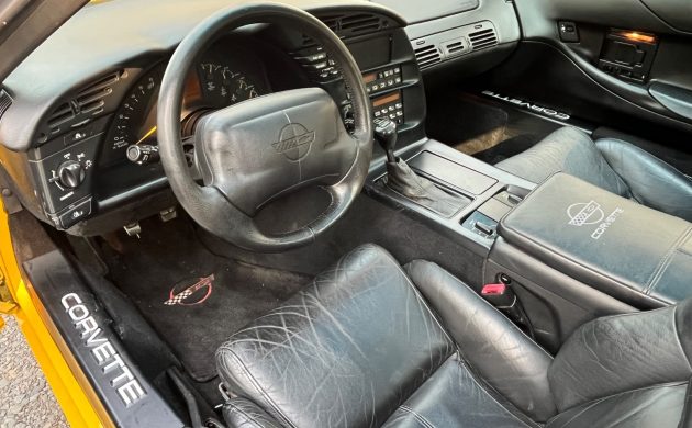 Ordering a ’95 Corvette in Competition Yellow meant that buyers had to choose interior trim in Black, Beige, or White. This car features Black leather, and as with the rest of the vehicle, its condition is extremely good. Outer seat edges are particularly prone to wear or failure, but the news is generally positive in this case. The driver’s seat bolster has worn, but not to the point where holes are developing. I would hand the car to a leather specialist fairly quickly, because it is better to address such shortcomings before small issues become big ones. The remaining trim is excellent, with no signs of broken plastic, UV damage, or abuse. I can’t spot any aftermarket additions, but this interior doesn’t really need them. The buyer receives air conditioning, power windows, power locks, power mirrors, cruise control, and a tilt wheel. The first owner splashed some extra cash, ordering the ‘Vette with the premium Delco/Bose Gold Series stereo featuring six speakers, 200 watts of sound you can feel, an AM/FM radio, and both a cassette and CD player.