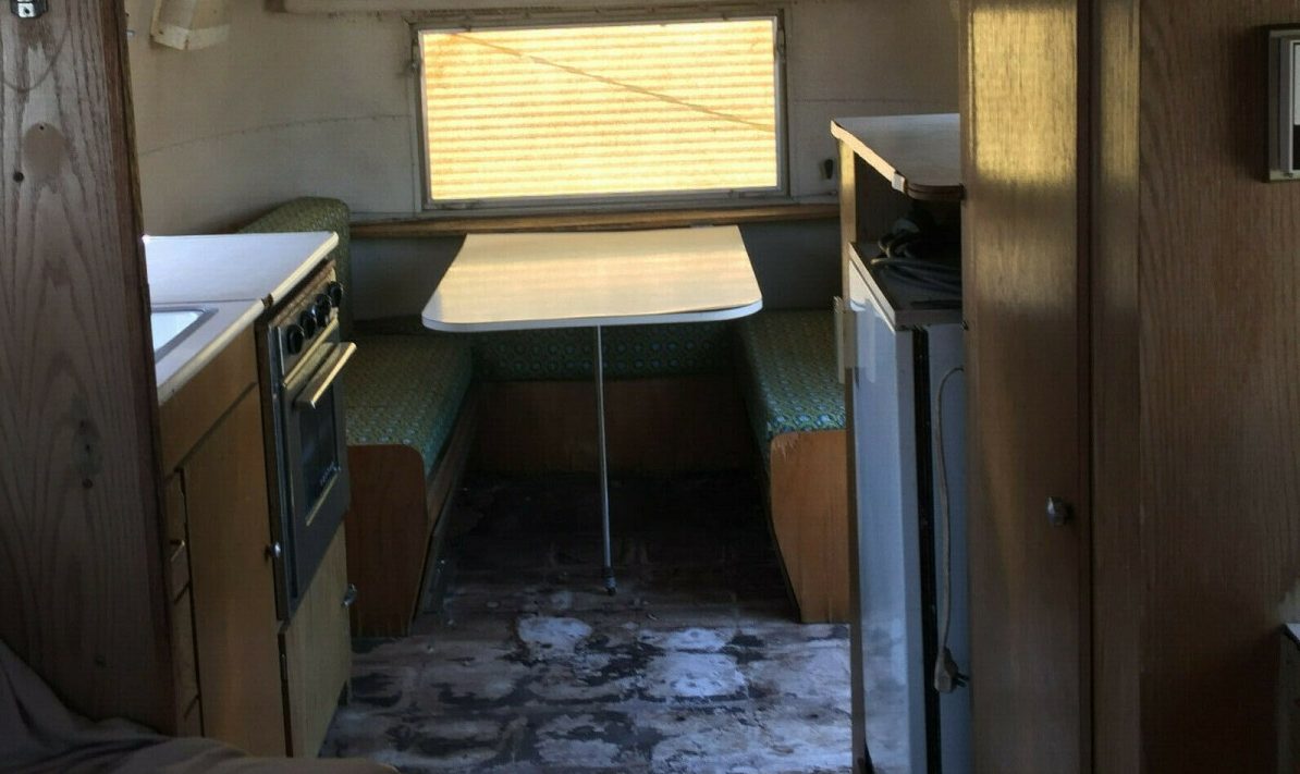 The seller has barely started the project, noting he has removed half of the old floor tiles. This is an interesting feature to me, as you normally wouldn’t start that work if you just planned to flip your barn find Airstream. So one could assume there was a plan to restore this rig that fell by the wayside, even though the description makes it seem like it’s hardly a basketcase. The seller notes that the ’63 models were desirable for numerous reasons, from being the last year that the Zolatone interior coating was used to the last year that high grade aircraft aluminum was used for the body. Small details, but likely a big deal to an Airstream collector.