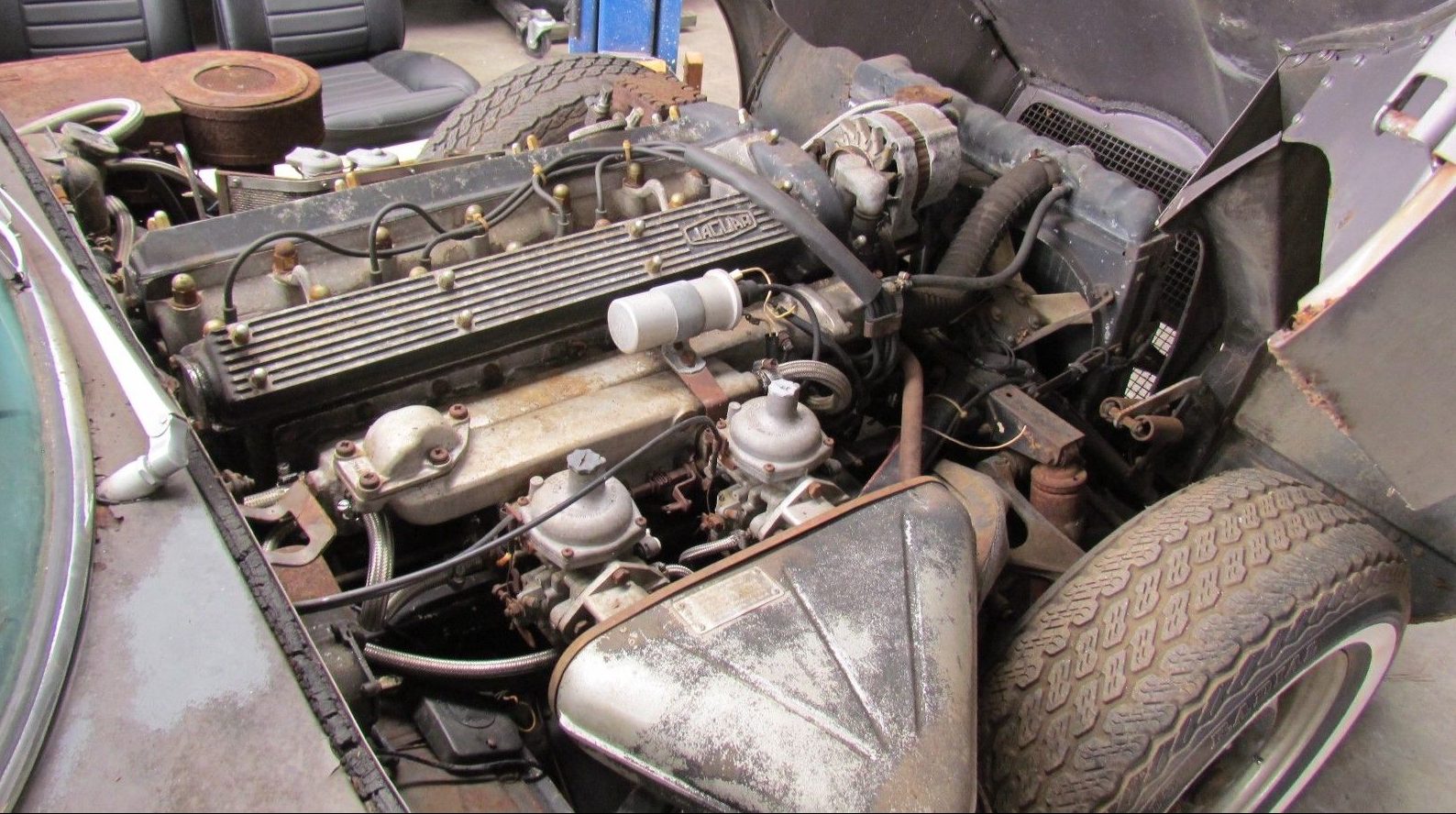 The seller notes that the passenger side door skin will need replacing, but I dig the weathered appearance on the rear hatch and roof. I can’t say I’ve ever seen an E-Type sporting the rat rod look, so this could be a first. Bumpers and glass look presentable, as do factory lenses. White wall tires aren’t my favorite look but they’re at least holding air; the seller provides little in the way of info about mechanical health, including whether the 4.2L mill still spins freely.