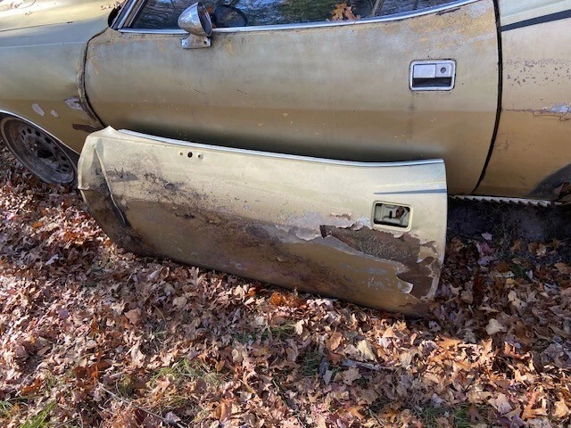 There have been some repairs made outside in the past, as the passenger side fender isn’t Citron Mist and we know the driver’s door has gotten replaced at some point, as the original part is shown in a photo leaning up against the attached component. The factory door still has the VIN sticker, and the remainder of the 340 decals are still present on the quarters and passenger side door, so maybe those are all still the original panels. However, those quarters are looking pretty rusty, so it’s probably time for them to be replaced. Hopefully, some of the other sheet metal will be deemed salvageable, but what could be hiding on the roof underneath the vinyl top remains a mystery.
