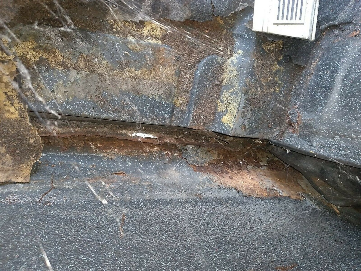 I think this is looking down into the trunk at the inside of the lower rocker panel, driver’s side (please correct me if you know better). The seller mentions some rust-through here and it certainly should be taken care of quickly before it spreads. Hopefully, it can be patched without needing to replace the entire panel.