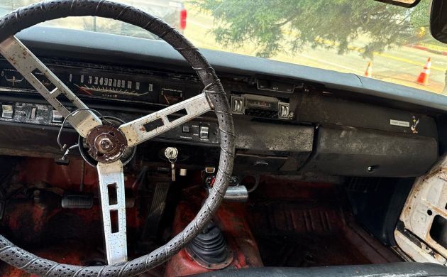 The interior photos are just dark enough that it’s hard to tell if the floors are solid, but we can see from the missing panel on the passenger side door that there’s a different color on the inside, so it’s probably been replaced. Some new seat upholstery and a detailed dashboard refurbishing will be on the to-do list for the next owner, but if the price doesn’t skyrocket before the auction ends, perhaps this one will sell low enough to make a restoration practical. Is this 1969 Plymouth Road Runner one you’d consider taking on as a project?