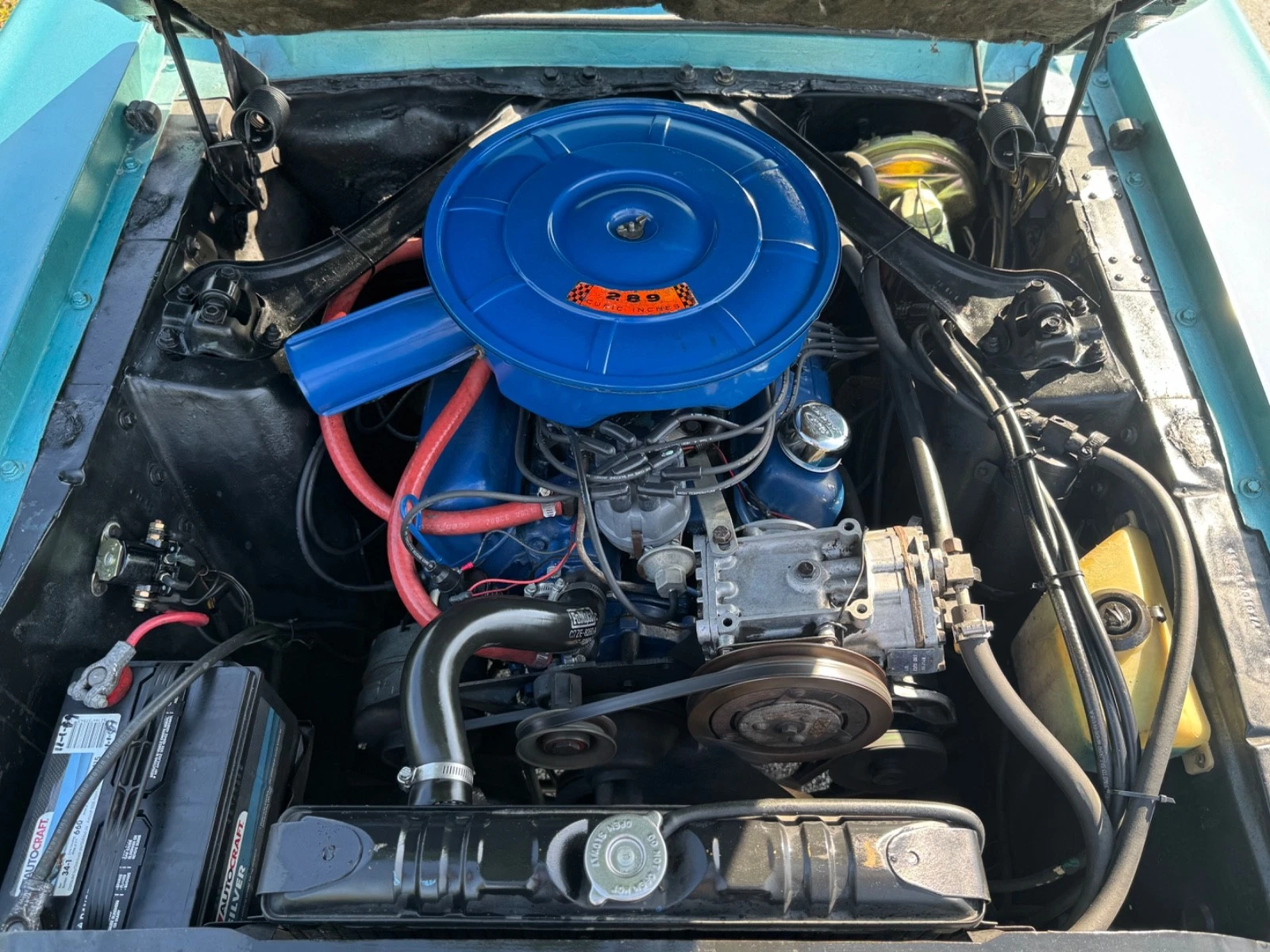 The brake pedal pad is not correct for a factory disc brake car so the discs could well be a later addition, as Aaron astutely notes. The ’67 I owned for about 10 years was a base car like this one but did have the optional discs — 4-piston calipers in ’67 only, IIRC. Cool car but certainly no powerhouse with the C code 289 and automatic. Heavier than a Stang, too, which didn’t help performance with the base engine.