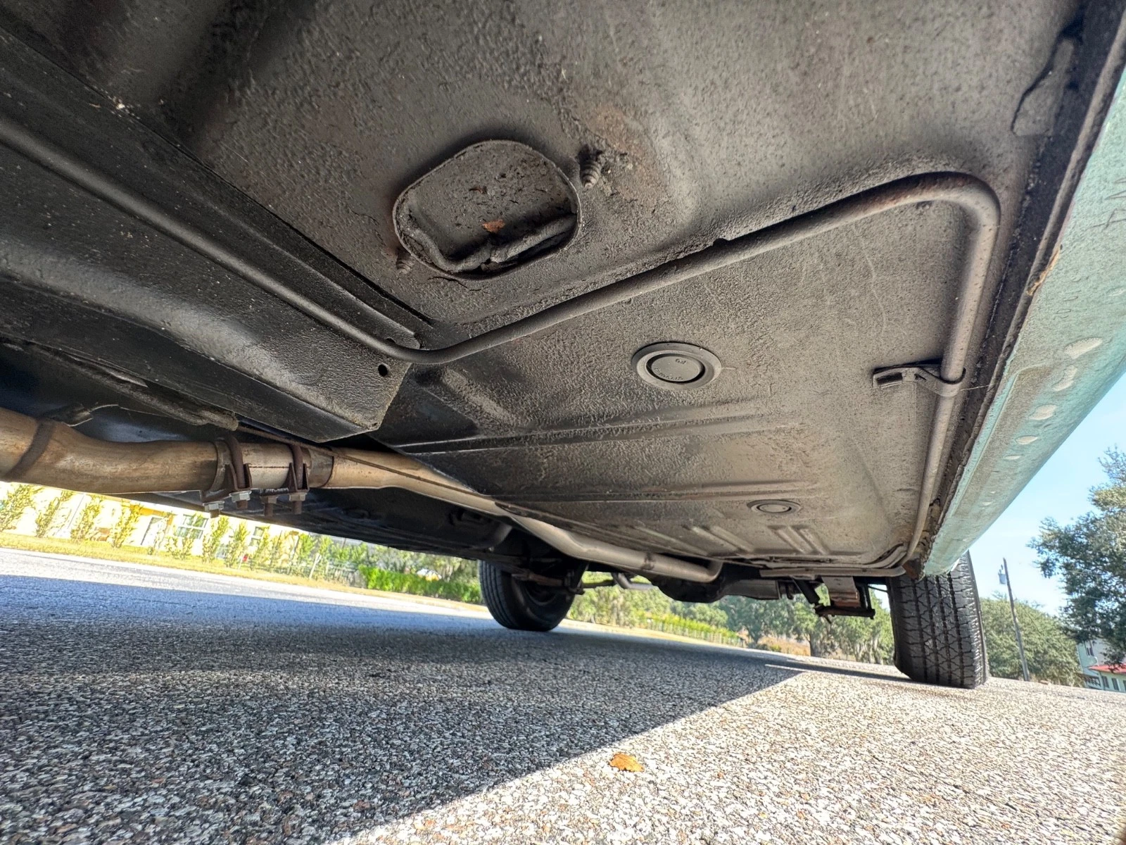 Rust-through in the rear floor? – – – – seen in the muffler photo.