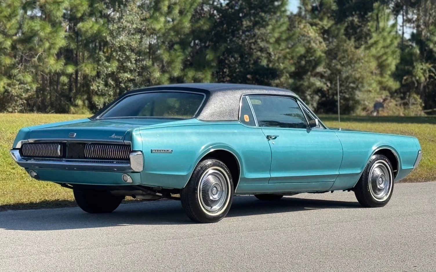The interior is in “amazing, original shape,” and the black upholstery and trim match the door tag, as does the Code W “Trafalgar Blue” paint. The car was repainted in the early 2000s, as I mentioned, and the seller mentions that the paint is in good shape “for its age,” but it has “minor discoloration on the front driver fender,” which is noticeable in the first photograph. The paint is a nice color with a very British sounding name (Mercury seemed to present the Cougar as a Jaguar for the home team), and the black vinyl top complements it well.