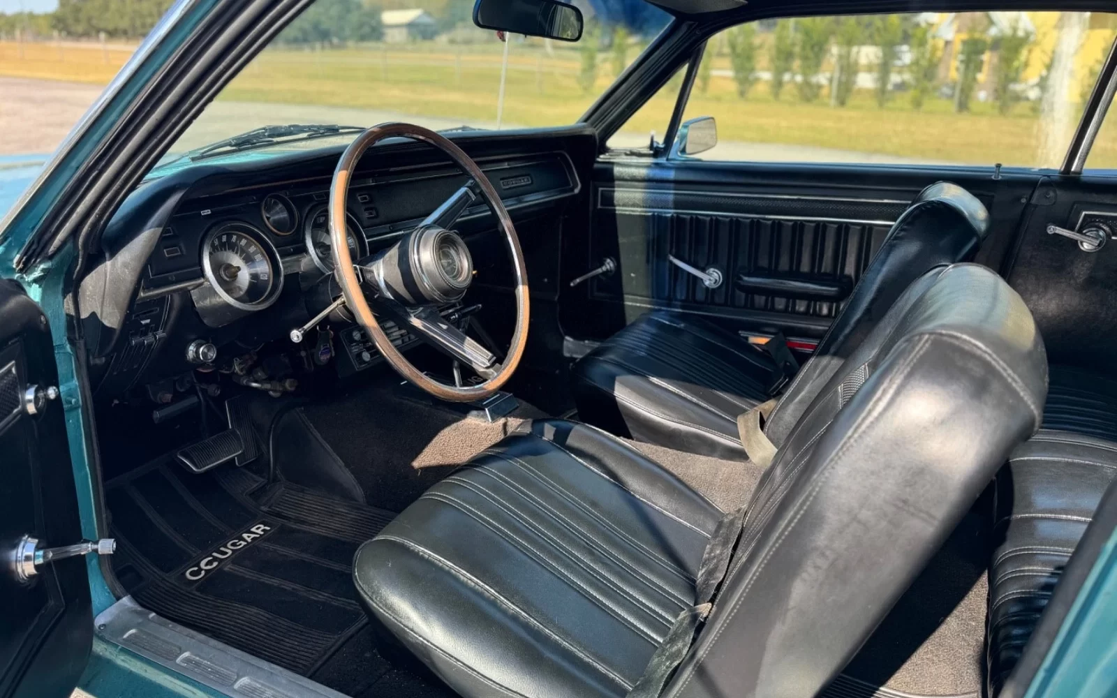 For being so closely related to the Mustang, the Cougar has always (to me) looked completely distinct. Of course, as soon as you open the hood, the ruse is up; however, the Cougar didn’t offer any of those Mustang sixes. This C-Code, 200-horsepower 289 two-barrel was standard, and in this case, it was bolted to a C-4 automatic and 2.79:1 gears in the 8″ open differential. In other words, its standard drivetrain was perfect for shuttling the professor back and forth to the university, and the seller says that it runs and drives well (there’s even a video). For those who wanted to get to work faster, a four-barrel 289 and a 390 four-barrel were optional. You’ll notice the air conditioning compressor mounted in front of the 289…to answer your question, no. It doesn’t work. The car does have power steering and power front disc brakes; the discs were optional on the Cougar, but it’s surprising to see them on such a run-of-the-mill cruiser. It’s possible that they were a more recent upgrade, but maybe the good pedagogue was safety-minded.