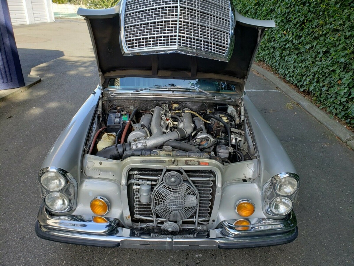 The interior checks all the boxes for being a nicely preserved vintage Mercedes, with acres of blue leather accented by clean wood trim. The seller notes it all remains in great condition, and is capped off by a headliner in good shape that isn’t sagging down. The Mercedes has a floor-shift automatic transmission, which the seller says switches through the gears without issue, allowing the monstrous 6.3L V8 to put all of its power down to the ground. I would imagine with big horsepower cars like these, issues with the transmission would be pretty apparent.