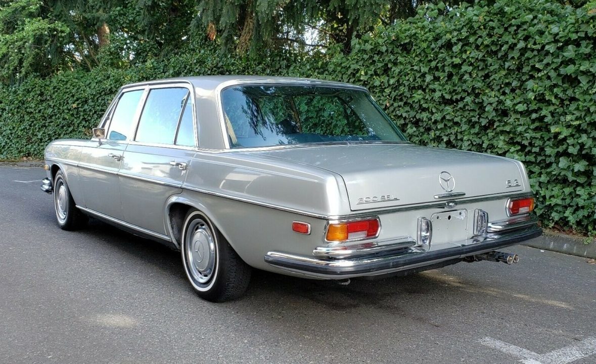 This 300SEL has great colors, with the factory painted hubcaps matching nicely with the exterior. The earlier models like these wore gorgeous chrome bumpers that sit tight against the body – a much better look than the “safety” bumpers that would come later. Despite appearing to sit low in this photo, the seller promises that the air suspension still fully raises and lowers back down when the car is turned off. Hopefully, that means the system has seen some attention in the last few years.