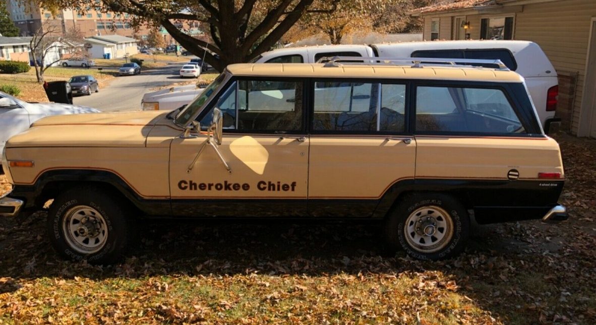 Nowadays, we’re used to seeing classic Jeep Wagoneers sell at dizzying prices, particularly those beautiful Grand Wagoneers with simulated wood grain applique. However, if you’re like me and not too keen on paying through the nose for an aristocratic-looking SUV with faux wood panels, then perhaps the less common but more rugged-looking AMC Cherokee Chief from the same era would meet your satisfaction? This 1981 Cherokee Chief with only 92,325 miles is available at auction here on eBay at no reserve. Bidding is currently at a temptingly low $4,065 with the sale ending very soon. The Jeep is available for local pick-up in O’Fallon, Missouri.