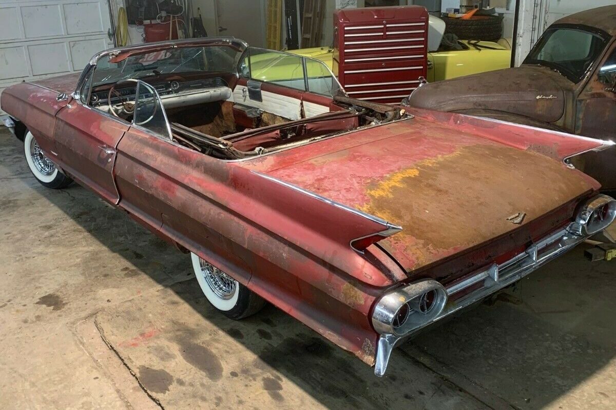 The engine bay of this Cadillac is filled with little more than some fresh air. It would originally have featured a 390ci V8 that produced 300hp and a four-speed Hydramatic transmission. The seller indicates that both components had deteriorated beyond the point of no return, so he junked them. That leaves the buyer with some choices to make. They could source a date-correct engine and transmission if they planned a faithful restoration, although slotting something different under the hood would not be difficult. The seller indicates that he planned an LS6 transplant, but this never eventuated. That is one option to pursue, although there may also be cheaper options worth considering. The interior is incomplete, although the dash and pad are good. The front and rear seat base had been afflicted by rust, motivating the seller to throw them in the bin. He does have a set of Eldorado buckets with the center compartment that he may be willing to sell to the successful bidder if they are interested. Otherwise, the buyer will need to source virtually an entire interior. That could potentially leave this aspect of the Convertible as a blank canvas if they wish to try something slightly left-field.