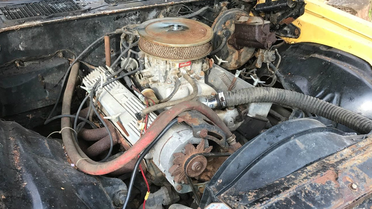 However, as previously stated the engine does run, and all the body parts are available if you really want to restore this car. That’s a 350 V8 under the hood with what looks like a healthy-sized Edelbrock carburetor, so you have something performance oriented to start with. I’d be more inclined to at least look for another body shell, but maybe I’m wrong. Would you start with this one? And what would you do with the car?
