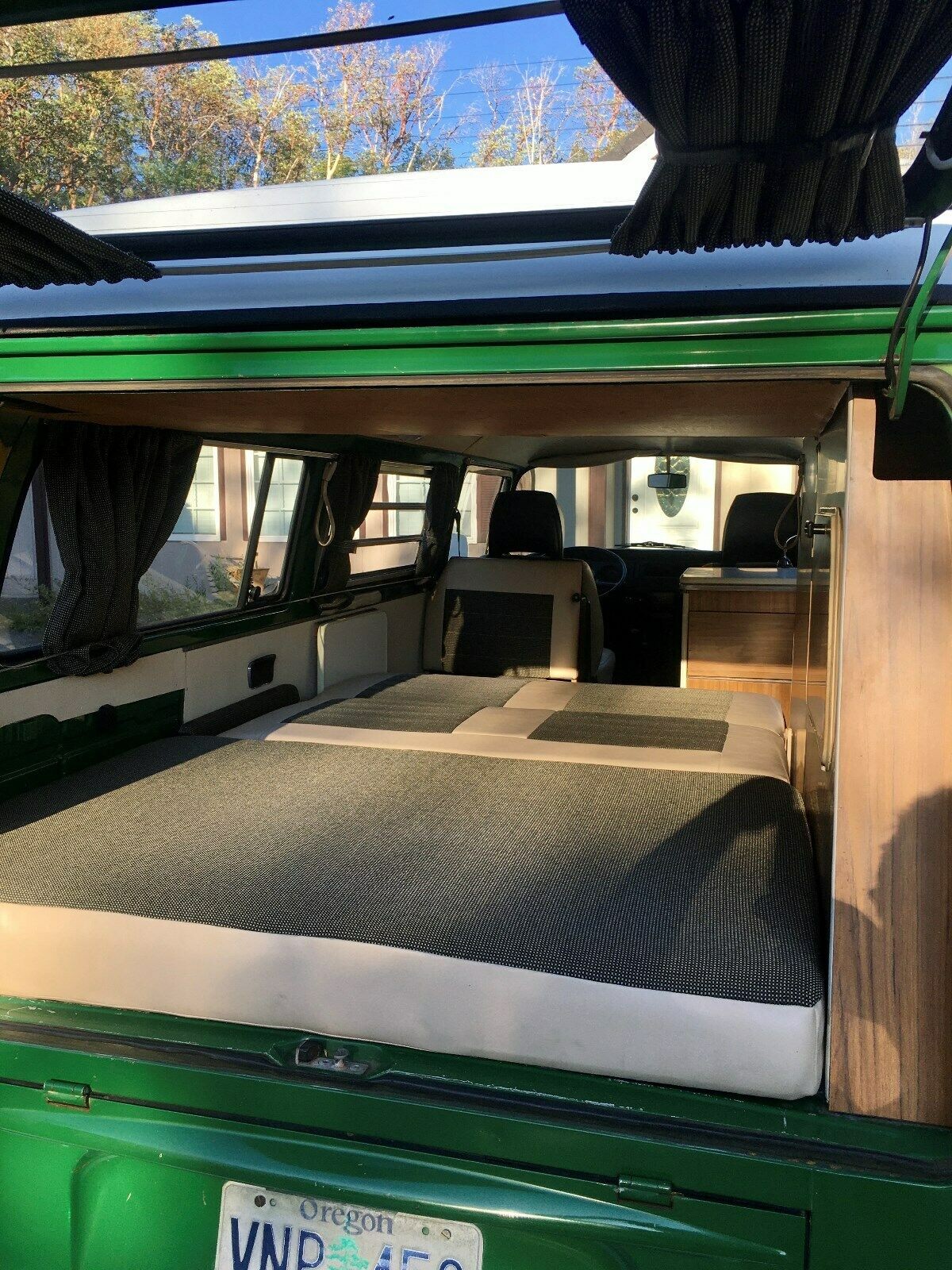 The new upholstery looks sharp, and complements the green exterior nicely. The original wood cabinets look to be in good shape, with all of the original Westfalia features intact. Other camping features worth noting include the seller’s mentioning of the fiberglass poptop being fitted with a new GoWesty three-window poptop canvas, which is a decent expense and a common wear-and-tear item on these camper vans. There’s a lot done here that the next owner won’t have to worry about, and the listing doesn’t even mention other details like the clean curtains and the seemingly unmarked door panels – this looks like a genuinely nice place to spend time.