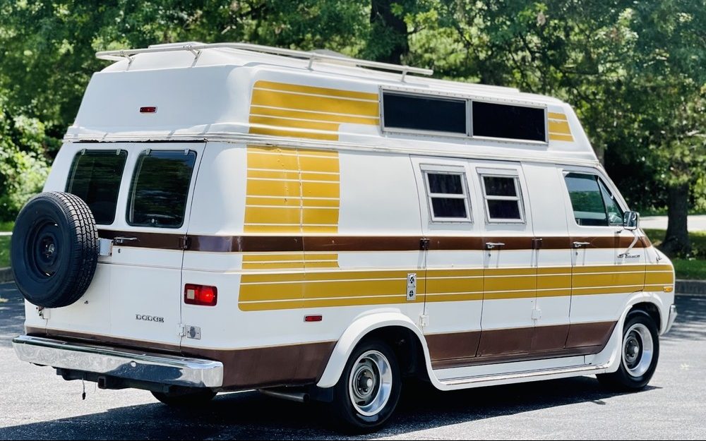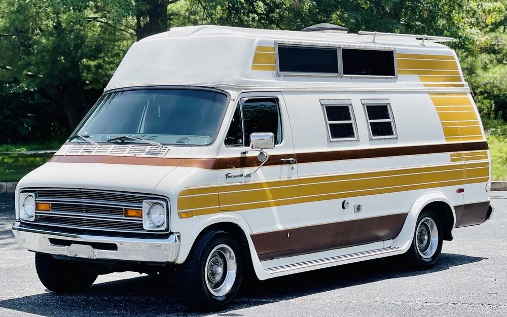 This sweet 1973 Dodge Tradesman 200 was converted to a camper early in its life and remains in surprisingly nice shape despite being a home on wheels. In addition to the well-preserved interior, the exterior decals are in outstanding condition considering their exposure to prolonged wear and tear, and the Dodge also comes with a sweet set of running boards and fender flares to give it that classic in-period “vanning” style. The seller has offered this survivor camper with no reserve, and bidding is currently just over $7,000 here on eBay, located in Glen Burnie, Maryland.