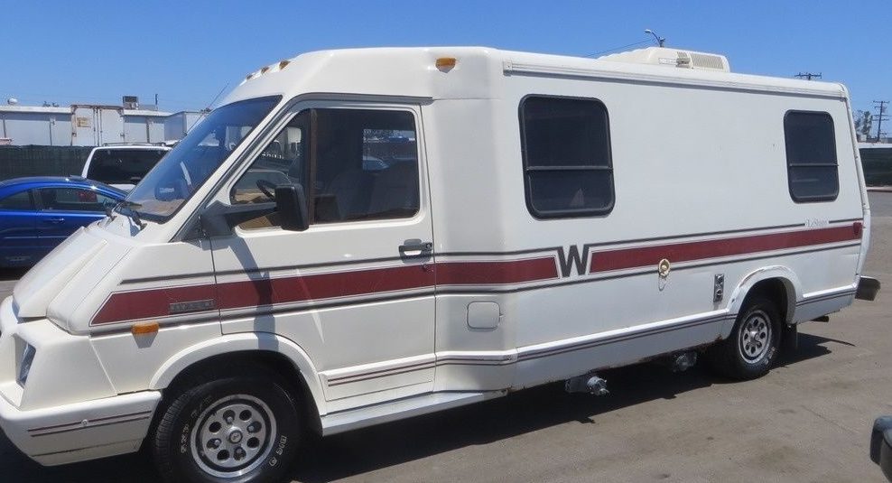 Believe it or not, this 1986 Winnebago LeSharo comes equipped with a diesel 4-cylinder paired to a manual transmission! More than that, the inside is actually quite clean – downright livable, even – which is shocking for a donated or otherwise relinquished motorhome. Now, it has the typical water damage in the roof areas that campers of this generation always seem to have, but it runs and drives and looks like it was cared for before ending up here on eBay, where bidding is just over $1,500.