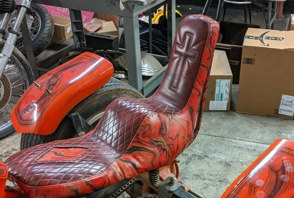 If a quick Google search is any indication, the practice of converting a Servicar into a chopper-style setup. Like many other takes on the classic hot rod, I’m sure the original builder may wish now that they left the Serivcar setup in place, as those rare, slightly-oddball Harleys command a fair price on the collector bike market. Regardless, choppers built in-period also have a following, but it’s hard to say whether it’s strong enough for someone to jump at that $5,000 opening bid. The seller notes it was built in 1972 and features many custom touches, including the paintjob, wheels, seat, molded frame, and 8+ OEM springer with twisted chrome front. It’s been off the road since ’79, so it didn’t see much use after it was built.