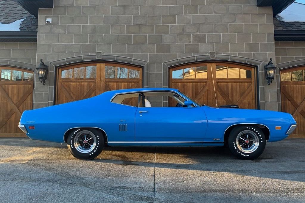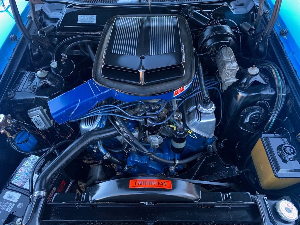 The Torino is finished in stunning Grabber Blue, and the Marti Report indicates that it is 1-of-39 to wear this combination of paint and interior trim. The car presents superbly, with a shine that catches your eye. The panels appear to be as straight as an arrow, and there isn’t a spot of rust to be seen anywhere. The seller makes no mention of any rust on the Torino’s underside, and the lack of even the smallest amount of surface corrosion on any of the car’s components gives us cause to be optimistic on that front. The trim and chrome present as nicely as every other aspect of the GT, and the hideaway headlamps are a classy touch that makes the Ford stand out in a crowd. The glass is spotlessly clean, with no evidence of cracks or scratches. The vehicle rolls on a set of 15″ Magnum 500 wheels, and these are free from any faults or problems. One dealer option that is included with the Ford is a set of louvers. These have never been installed and are in as-new condition.