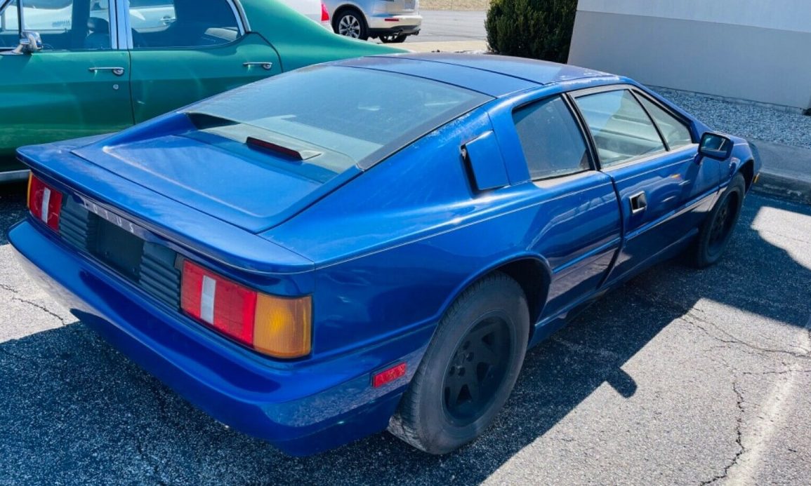 The wedge shape of the Esprit is impossible to mistake for any other car, especially since the general styling of Lotus’ marquee sports car didn’t change much over the years. One thing to remember if you pick this Lotus project up and find out the taillights are cracked: they’re shared with the Toyota Corolla AE86 hatchback of the same vintage (you’re welcome – I just saved you the only money you’re going to save on a project like this). The Esprit doesn’t appear to show any major dents or dings, but the paint is definitely in rough shape and I question whether this is an original color offered by Lotus – I don’t think it is. The rattle-canned alloy wheels are also an ominous sign of cheap and neglectful prior ownership. The seller notes it also needs new tires.