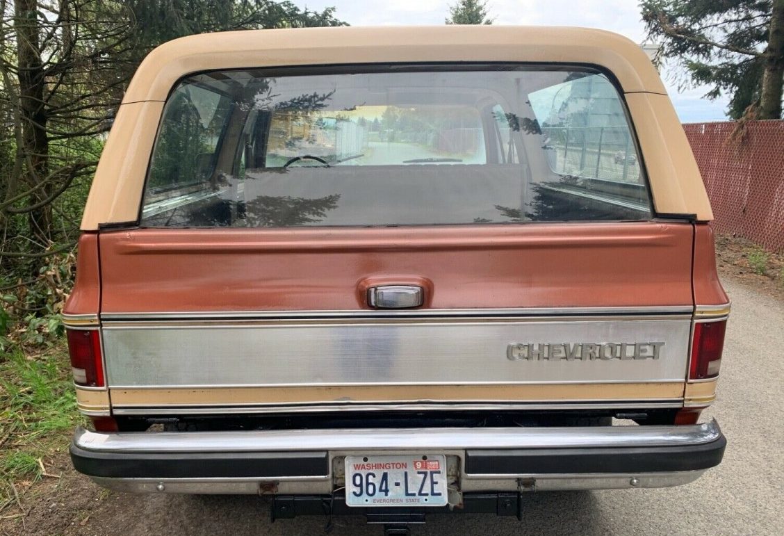 Not to nitpick this Blazer, but… the tailgate chrome trim is chrome and black vs chrome and yellow as it should be, and is present on the rest of the vehicle. This might indicate the tailgate having been damaged at some point in her life, and since the chrome/yellow trim was a one year only thing, that the body shop assigned to perform the repairs, might not have been able to source the correct trim.