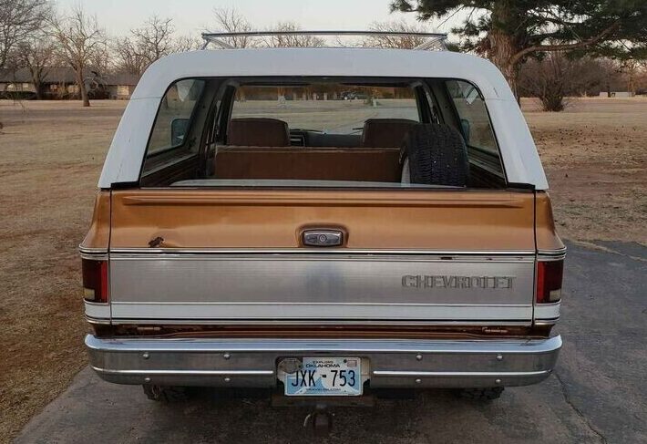 The Blazer features two-tone gold and white paint with a classic cloth interior (the seller calls it houndstooth but it’s hard to tell for sure). Those Oklahoma license plates offer some reassurance that this Blazer isn’t rusty, and is at least far more intact than the one we featured the other day. The Blazer is a driver but it’s got a lot of original and period details working in its favor to help ignore blemishes like that dent in the tailgate. The classic color scheme, the brush guard, the white-painted rally wheels – this is a square body that looks the part.