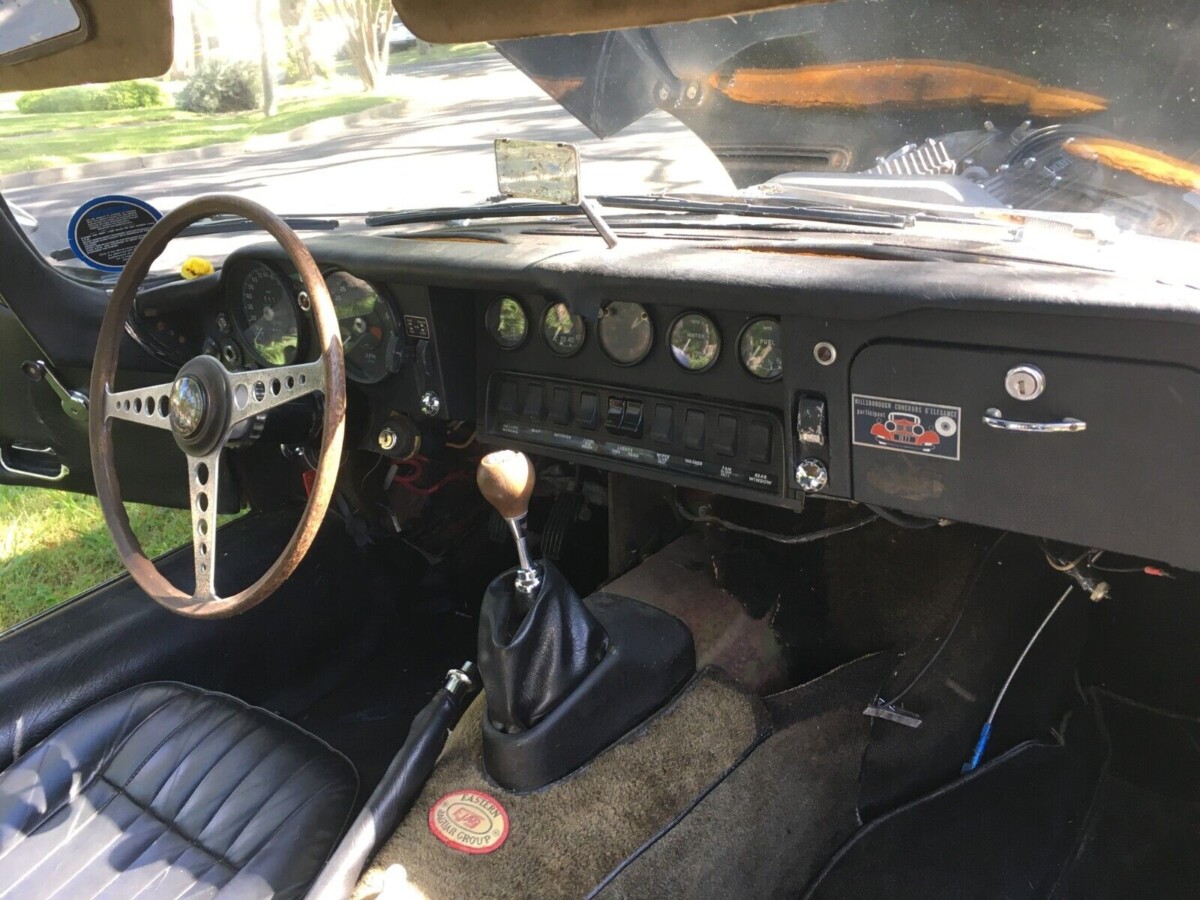 The interior is all business like in every other E-Type, but you can see the transition to the less sexy switchgear that was reserved for the sought-after Series 1 cars. Still, an E-Type is an E-Type, and most of us wouldn’t complain about a view like this. The seller notes the center console has been removed and that there is evidence of a fire suppression system that is no longer hooked up; this makes sense considering the seller believes it spent time as a vintage racer. Among the handful of flaws disclosed by the seller is a thermostat that doesn’t read correctly and will likely need to be replaced.