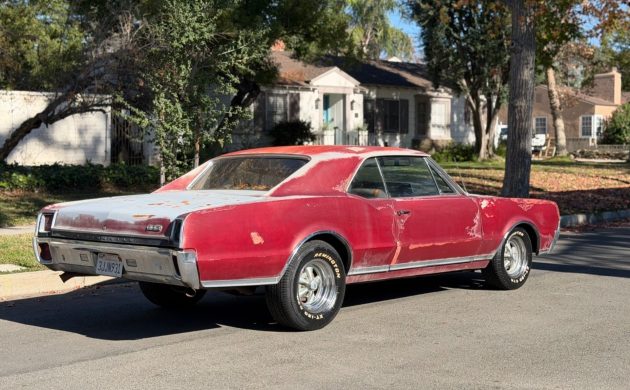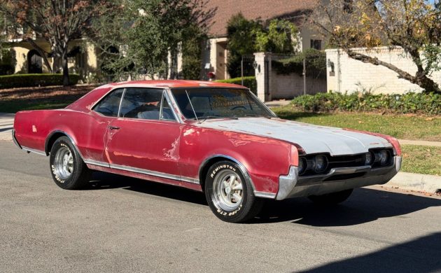 According to the seller, this is an all-original 1967 Oldsmobile 442 wearing red paint over a black interior, backed by an automatic transmission and V8 power. The car comes with a clean California title and shows approximately 80,000 miles. While it’s clearly not a finished or turnkey example, it remains intact enough to be evaluated, enjoyed at a basic level, or gradually brought back to its former glory.