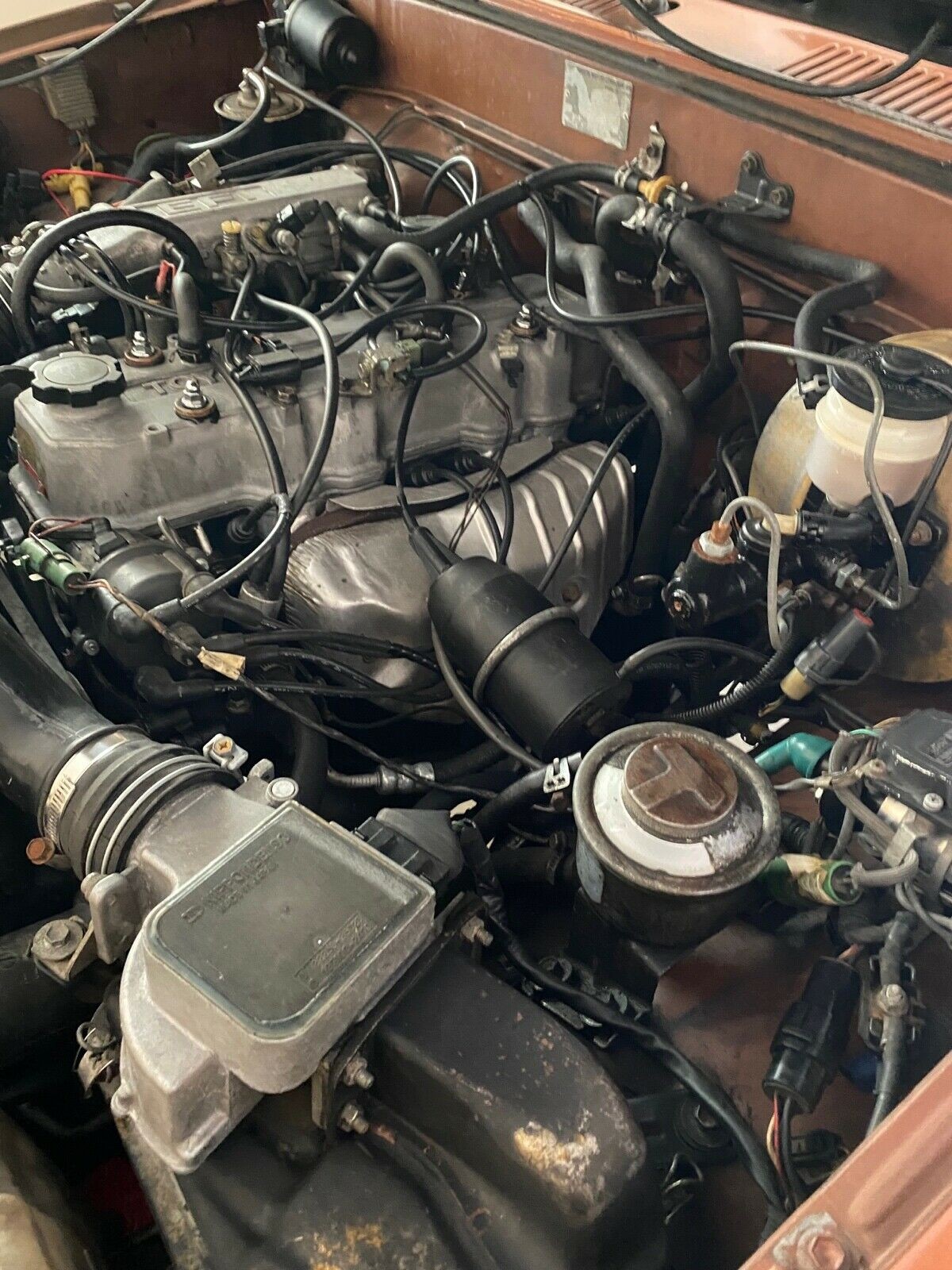 Not to nit pick but, this is the 22RE engine, fuel injected. Also all 22R engines are a timing chain engine, not timing belt. Looks pretty nice for it’s age though.