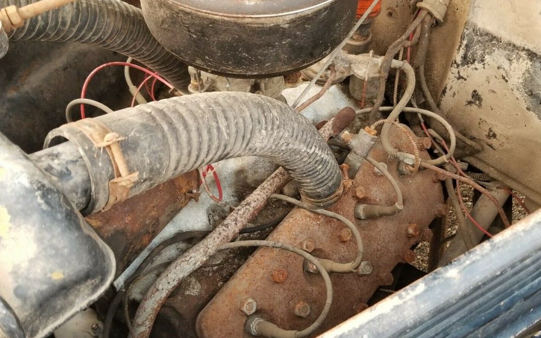Once again, we’re getting the old “ran when parked” claim as if that ameliorates the fact that the engine turns over, and, I gather, doesn’t start. At least it’s not seized. The engine is a typical 85 HP, 221 CI flathead V8 mated to a three-speed manual transmission. As with the rest of the car, the engine room maintains a very original appearance.
