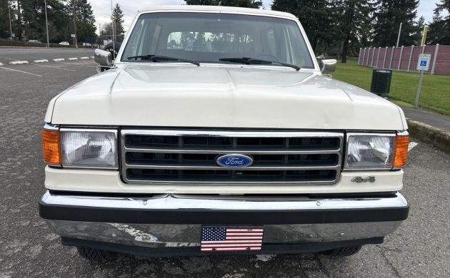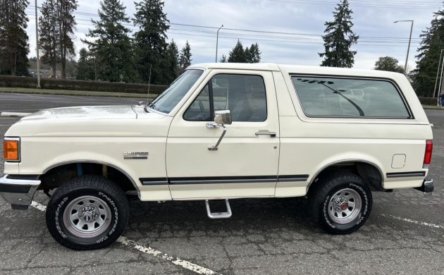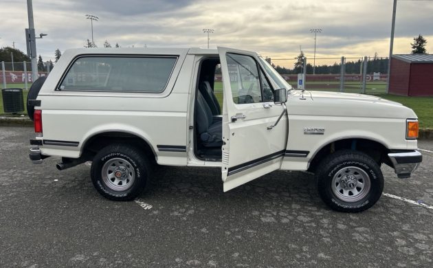 This 1990 Ford Bronco XLT is being offered on eBay in a no-reserve auction, giving bidders a chance to land a full-size classic 4×4 without a price floor. Finished in white with a blue interior, this example is described as wearing 100% original paint and showing 138,299 miles. It’s powered by a 5.8-liter V8 paired with an automatic overdrive transmission and four-wheel drive.