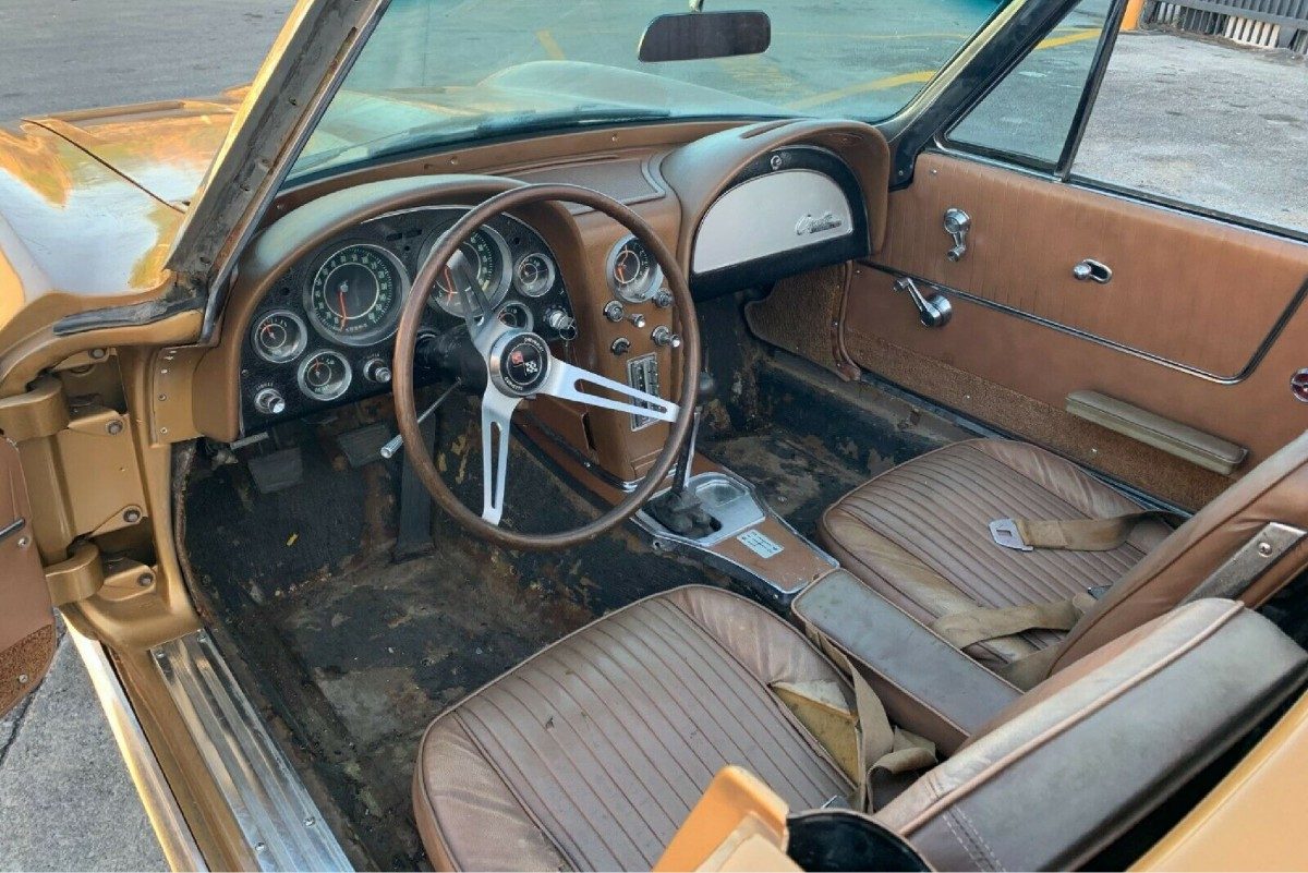 Now, doesn’t that look better? The Corvette was dismantled back in 1985 for a frame-off restoration, and this as far as it has progressed. There is still some work ahead for the buyer, but there is plenty of good news to digest. The owner supplies photos of the vehicle’s underside, and it as clean as you might expect for a restoration of this type. The panels are finished in Saddle Tan, and while it generally has a nice shine, there are a few marks and chips that have accumulated over the years. These might be able to be repaired, but I wouldn’t be surprised if the buyer chooses to treat the car to a repaint. The frame for the convertible top is present, but the top itself is shredded beyond salvation. A few chrome pieces are missing, and it isn’t clear whether these are just unattached or whether replacements will need to be sourced.