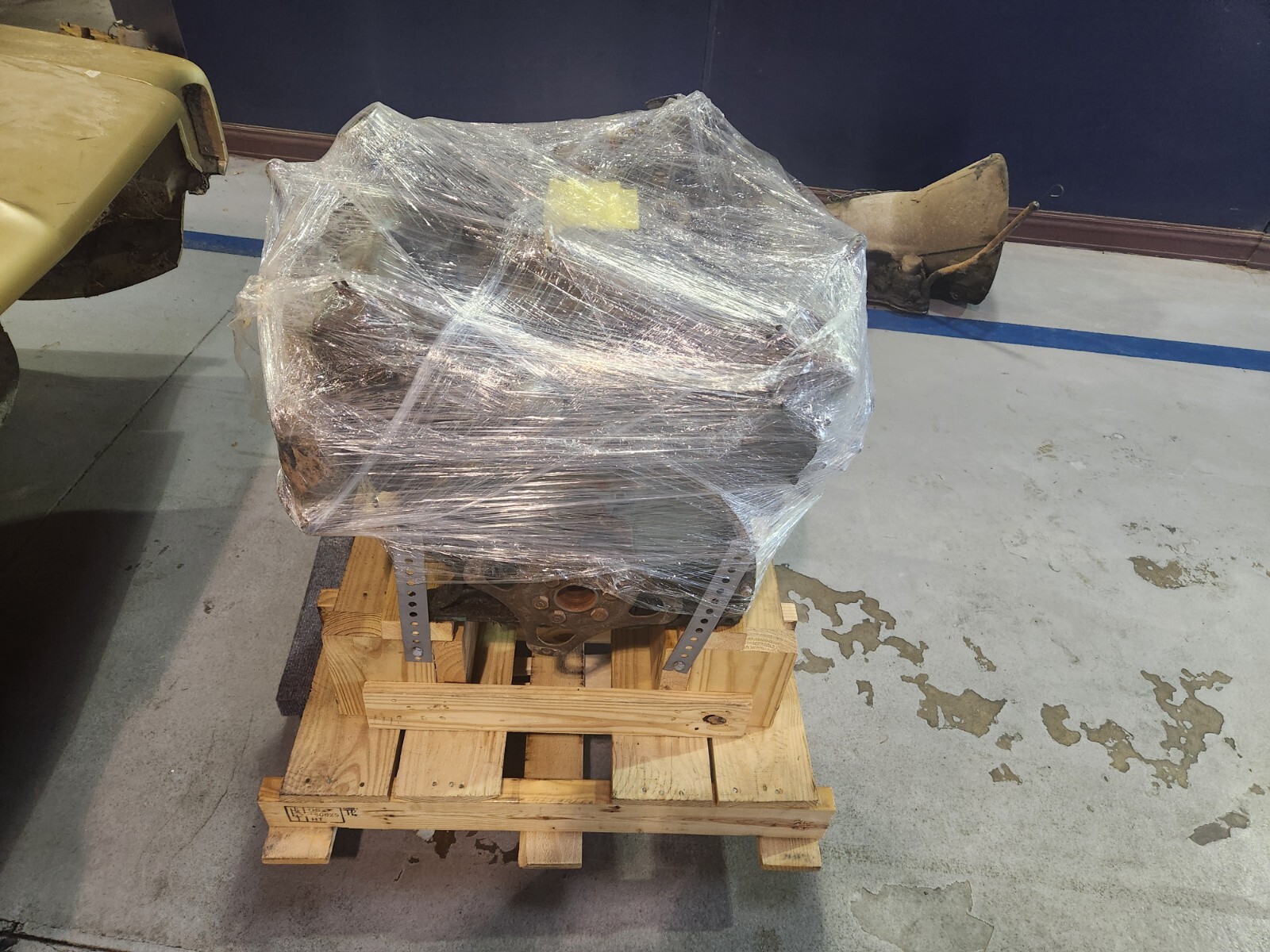 Dodge offered two versions of the 383 for their Charger in ’69, one with a 2-barrel on top making 290 HP or you could go for the 4-barrel variant and get an additional 40 horses. This car is equipped with the latter, or maybe I should say was because the motor’s now been removed and is sitting on a pallet, but the engine is stated as the numbers-matching block although no word on if it was running before being taken out. We get a good shot of the compartment post-removal, with things in the bay looking better than I was expecting.