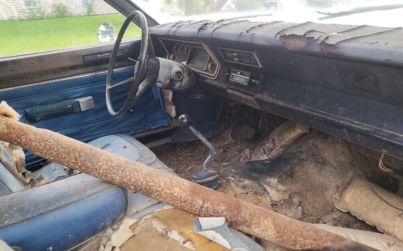 If I had to imagine an image in my mind of how an interior that sat unoccupied in Arizona for years and then went through a flood would appear, this would be exactly it, and I’m guessing there’s little remaining inside that’s going to be of much use. But we’ve all seen numerous autos that started off worse than this one resurrected from the dead, so if you’ve got a strong set of skills perhaps getting the Duster back on the road might be time well spent. What are your thoughts here?