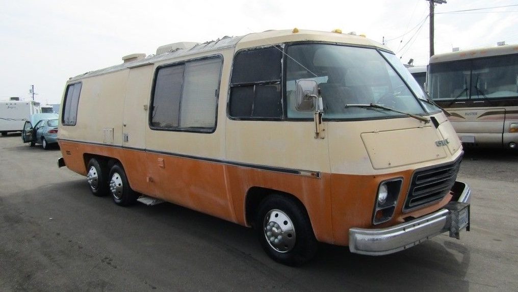 Worked on a few back then. Olds 455 engine as I recall Plenty of torque….MPG??..Uhhh…hold that thought…. Air suspension..right? I understand that one of the issues is that, even in dry climates, the big (of COURSE it’s BIG) rectangular fuel tank gets a layer of dirt on it and, when it gets wet, stays wet, and rots out the TOP of the tank. Also the brakes are good..but they were sourced from the Toronado/Eldorado and are not REALLY truck brakes. With the tandem rear wheels and not duals, dropping off the edge of the pavement could be a pot-rattling wheel waving adventure. With all that, these have always been the ONLY motor home I’d consider owning. They DO get leaks around the windows and such but compared to a “conventional” stick and tin camper? ..well..there isn’t a comparison….