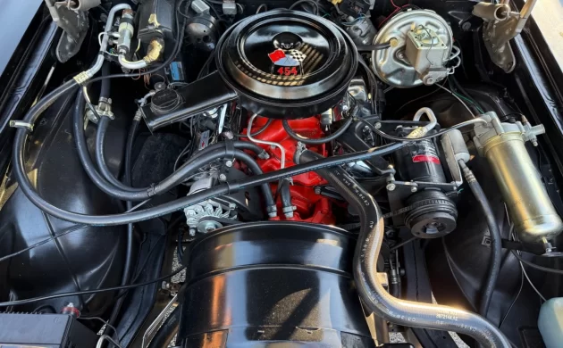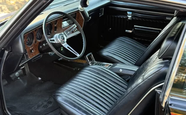 Although the LS5 454 didn’t have the oomph of the ultimate expression of Chevy factory-rated horsepower, the 450-horsepower LS6, it better represented the Monte Carlo’s luxury image. And it was no slouch—Motor Trend found that it accelerated to sixty in seven-seconds flat and finished the quarter-mile in 14.9 seconds at 92 miles per hour. The seller says that this clean “Tuxedo Black” Monte Carlo underwent a body-off restoration about three-and-a-half years ago, and that the 454 has matching numbers. The engine compartment looks nicely detailed, and I’ll never tire of pointing out the size of the cooling fan shroud. You could mount a drag slick on that thing.