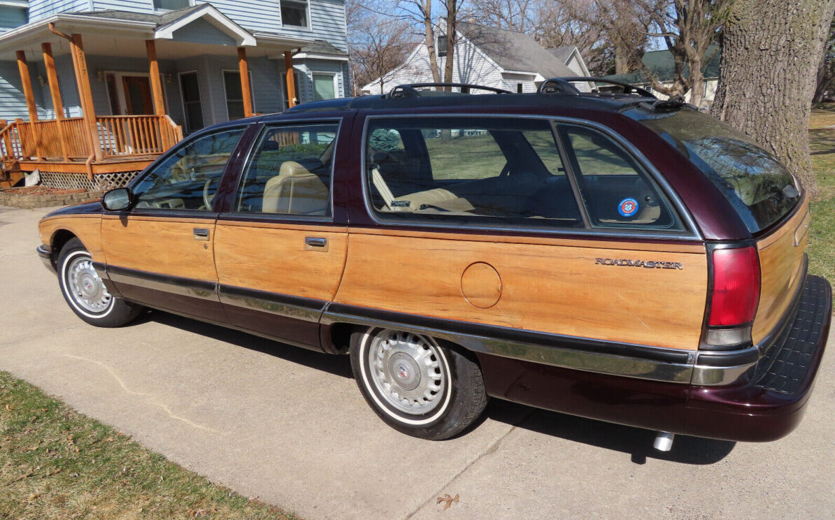 It honestly looks more like Hudson Hornet or a Zeppelin than it does a Buick but that’s the style that all GM ’91-’96 full-sizers encompassed, sedan and wagon alike. While this ’96 Buick Roadmaster is a big rounded wagon, the faux wood treatment breaks up some of its slathered enormity and actually causes this Buick to more closely resemble a cabin cruiser. Regardless, this car will never be classified as svelte. While sunbathing in St. Paul, Minnesota, this Roadmaster is looking for a new home and is available, here on eBay for a current bid of $5,100 with twelve bids tendered.