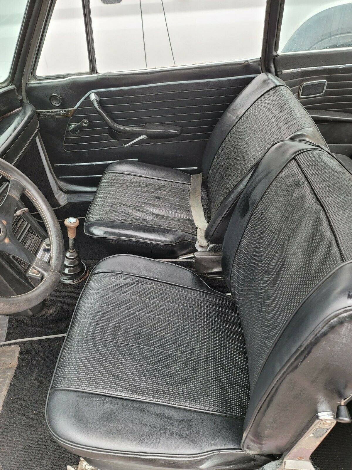 * The horrible carpet kit in this car should be pulled up to confirm the floors are rust free… especially where they meet with the inner part of the longitudinal sills. Carpeting should be a salt and pepper loop