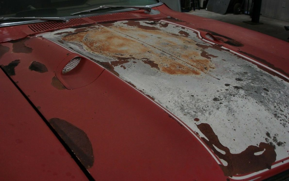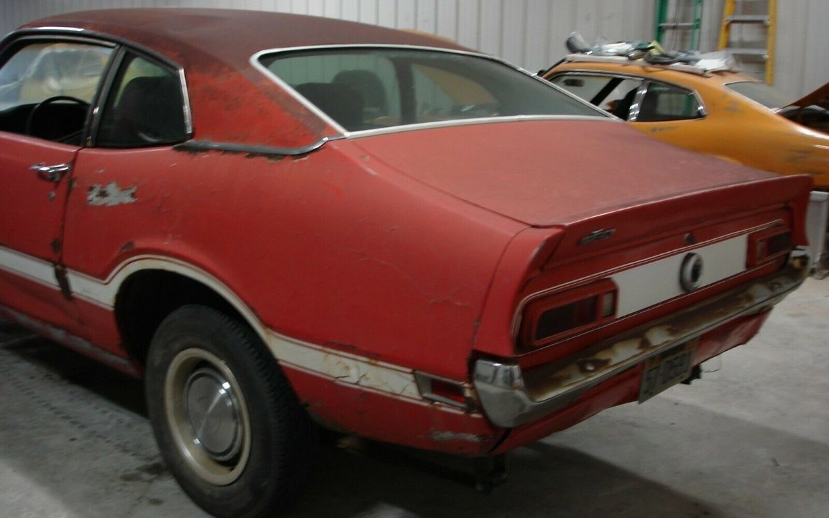 This Maverick is a Grabber, a sporty trim option that was introduced in its inaugural year of 1970. Specifically, a Grabber added features such as trim rings with hubcaps, tape stripes adorning the flanks, a blacked-out hood panel, color matching racing mirrors, a decklid spoiler, and other trim items. The big news for ’72, however, was the inclusion of two fake hood scoops positioned on either side of the raised hood “blister”. The aforementioned V8 engine was a Grabber option, but not standard equipment. The seller states, “ALL GLASS IS GOOD CONDITION. GRABBER HOOD, HAS RUST IN FLOORBOARDS, REAR QUARTERS AND ROOF. ORIGINALLY HAD A WHITE VINYL ROOF“. Yes, it’s a bit rough.