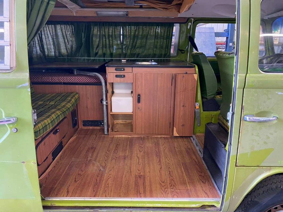 The tartan green cloth is a favorite of mine, and almost all Westys have this pattern with the colors dictate by the exterior – green vinyl and orange vinyl being rotated out according to the exterior paint color. The driver’s compartment is in outstanding condition, and the dash shows no signs of cracks. The door panels have aftermarket speakers installed, but they’re not particularly noticeable. The seller states that after some fresh fuel and a new battery, the Bus fired right up, and that the brakes, clutch, and four-speed transmission all operate as intended. A tune-up is still recommended along with some bodywork, but to me, the hard parts are intact on this example.