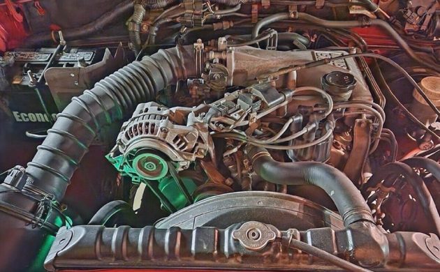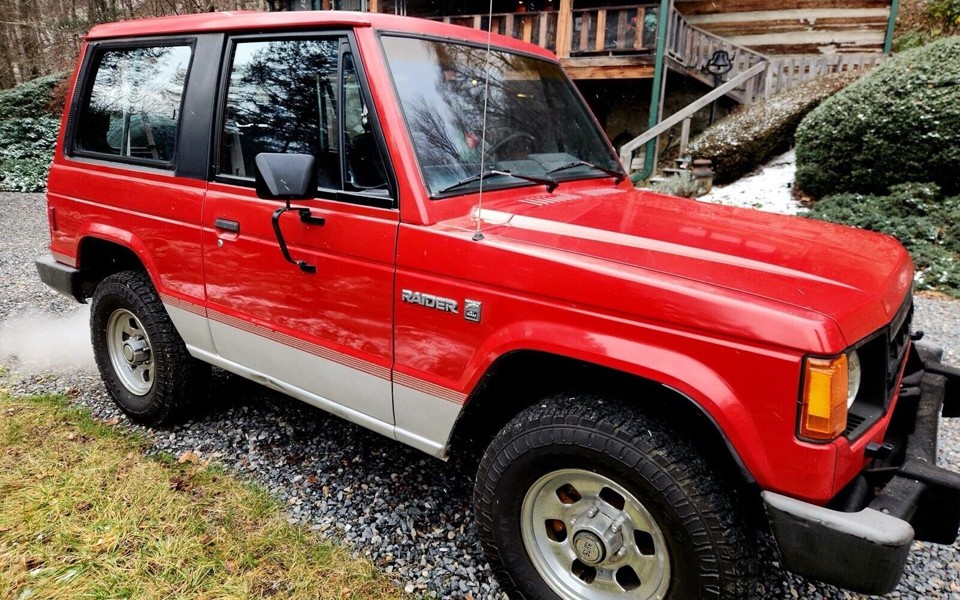 The heavy HDR engine photo shows a Mitsubishi G672 3.0-liter SOHC fuel-injected V6 with 143 horsepower and 168 lb-ft of torque when new. Sending power through the 5-speed manual and transfer case to all four wheels as needed, it’s said to run well, doesn’t leak, and smokes a bit at start-up if it’s been sitting for a while. It has new tires and this is a nice-sized SUV compared to most offered today. Have any of you owned a Dodge Raider?