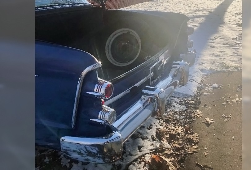 The interior, what little we see of it, does look almost perfect other than a stain on the back seat. The seller says that the “Gas gauge, E brake, heater, dome light, and instrument cluster all work properly. Headlights, tail lights, turn signals, and license plate light all work properly. All factory tinted glass in very nice condition with no clouding.” They go on to say that the “tires are very old. The brakes should be serviced along with general maintenance to be road worthy again.” Still, this is such a great looking car, it sure would be fun to tinker with this beautiful machine over the winter to get it ready for summer cruising and show season.