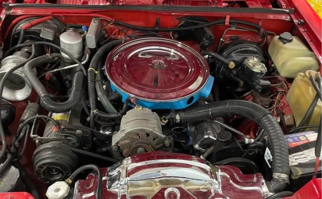The interior has a neat color combination: white upholstery with red carpet and accents. Not to mention, I think that the Olds “custom-sport steering wheel” is one of the nicest looking of its era. The seller says that the upholstery is new, as are the tires and brakes. Since the engine’s been changed, we can only hope that the automatic is at least a Turbo 350, but the ad doesn’t say.